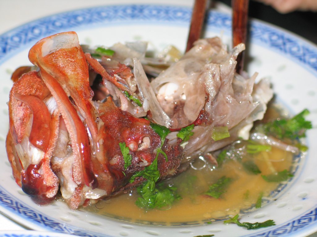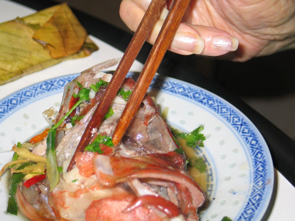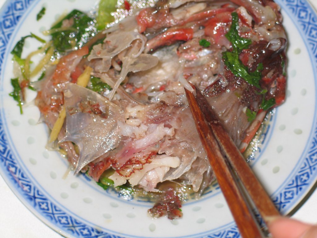 This is a picture sequence of Grandma skillfully dissecting a fish head with chopsticks.